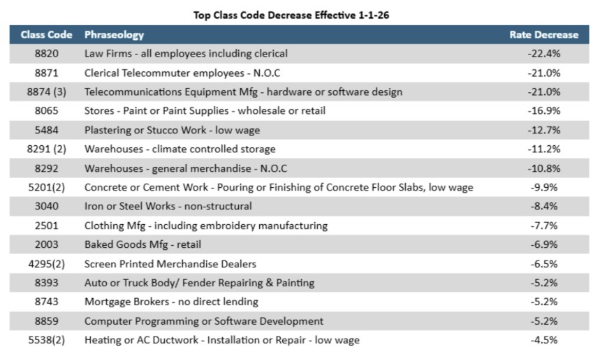1. Rate Decreases for Select Industries - Effective January 1, 2026